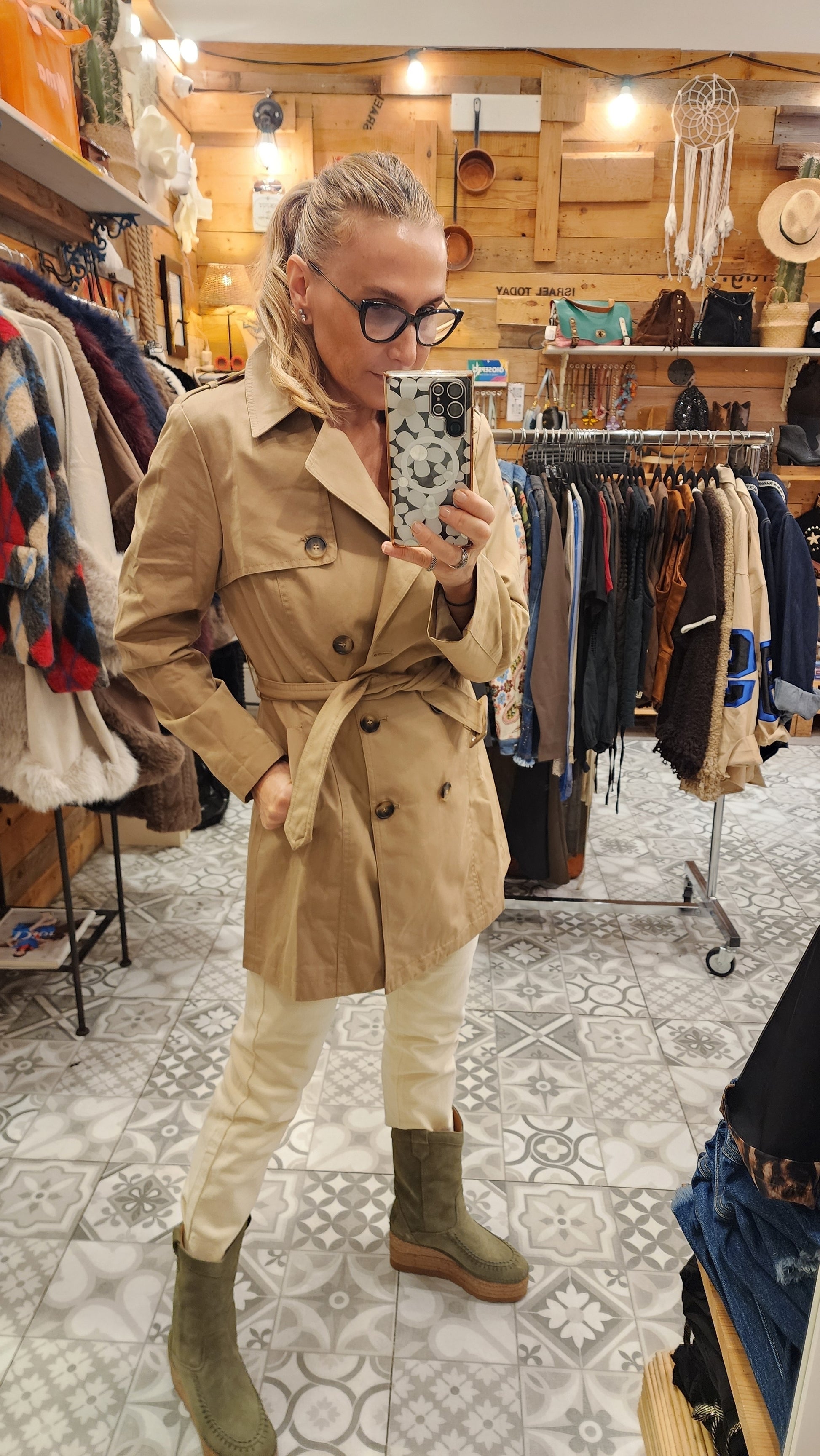 מעיל טרנץ עם חגורה