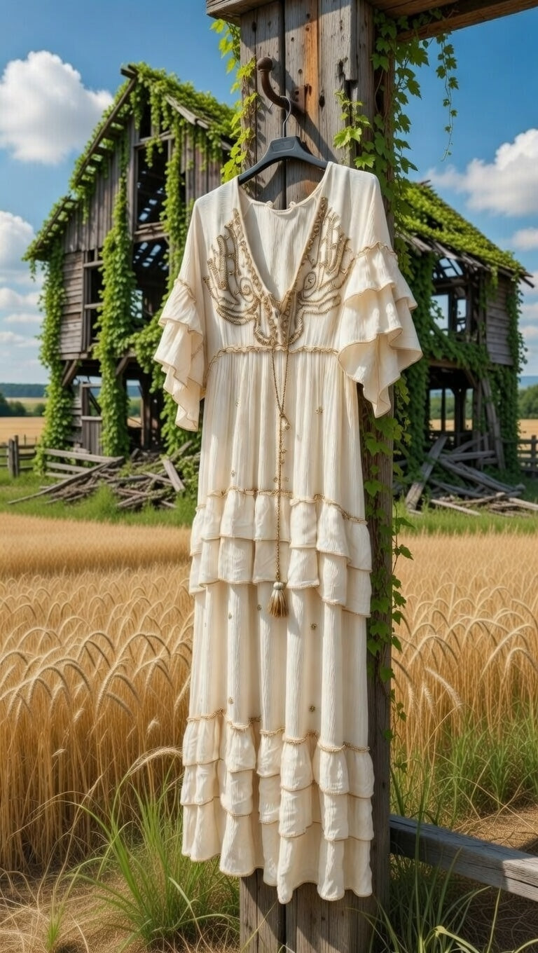 שמלת מקסי בוהו עדינה בצבע שמנת: